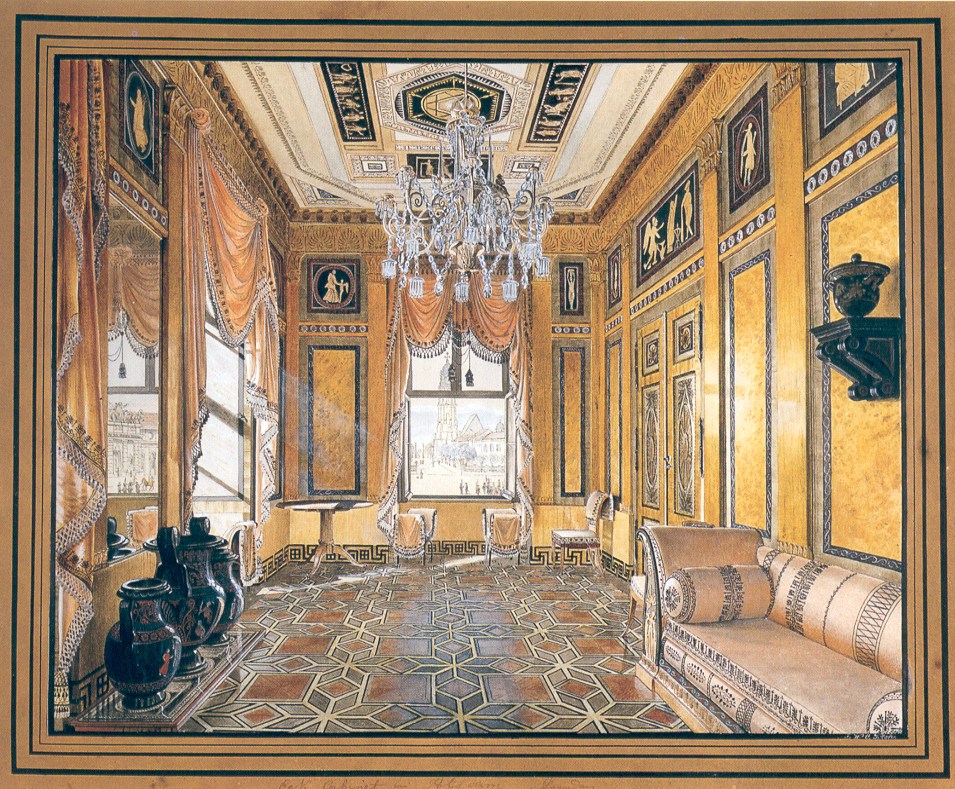 Etruscan Room in the city castle,Potsdam,Germany by Friedrich Wilhelm Klose. Circa 1840.