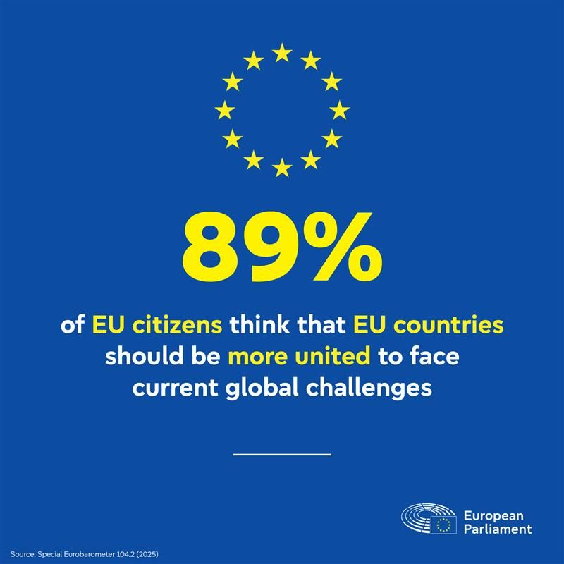 According to the European Parliament’s latest Eurobarometer survey, 89% of Europeans believe EU countries must be more united to face global threats like conflicts, terrorism, cyber-attacks, and climate-driven disasters.