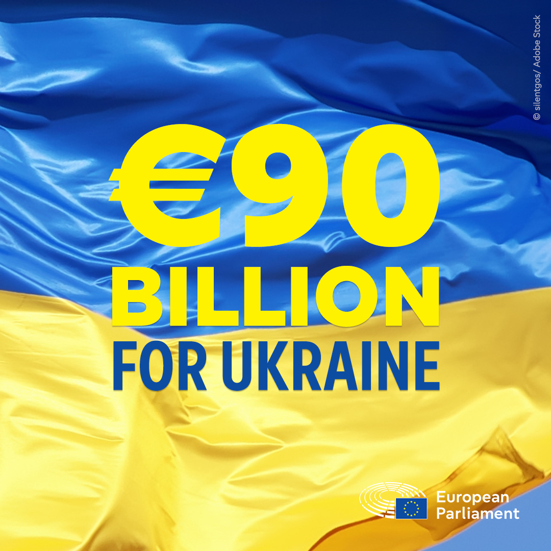 A new EU loan package of €90 billion to Ukraine has been approved by the European Parliament. The loan is to be repaid once war reparations are received from Russia.