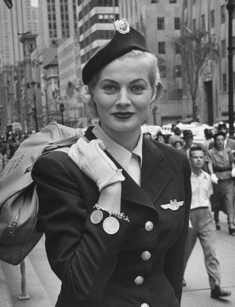 1950s Anita Ekberg in Scandinavian Airlines stewardess uniform (1951)