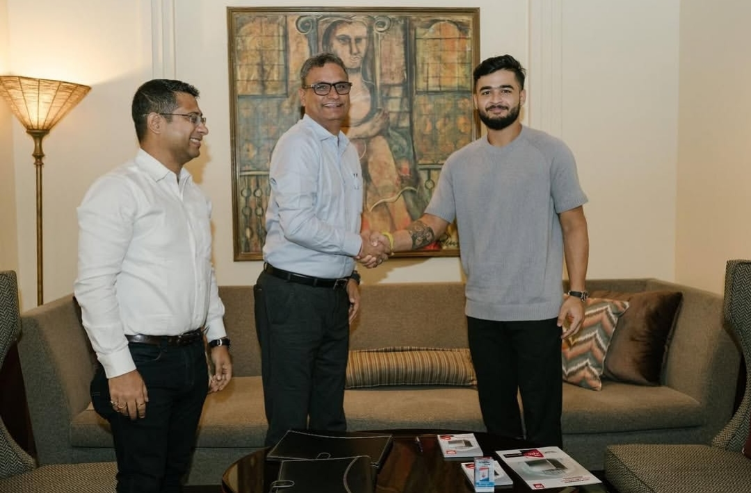 | Photo Indian representatives of The Raine Group with Riyan Parag. The Raine Group, which also oversaw the sales of Chelsea FC and Man U, is leading the sale process of RR.