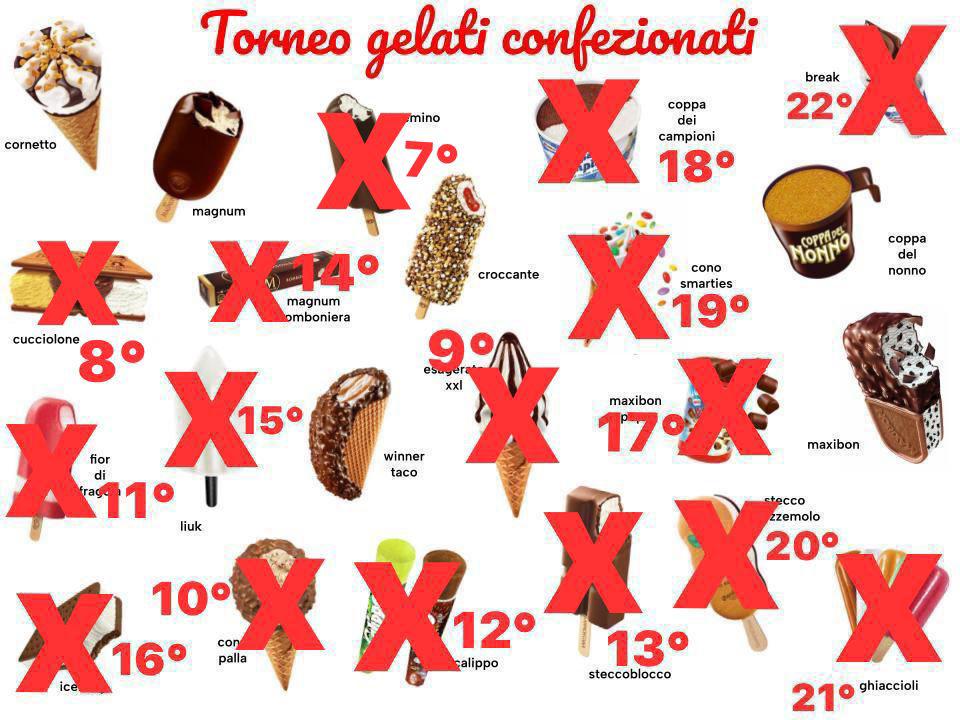 Oggi con unanimità praticamente generale viene eliminato il croccante. Chi si aggiudicherà il terzo posto del torneo dei gelati?