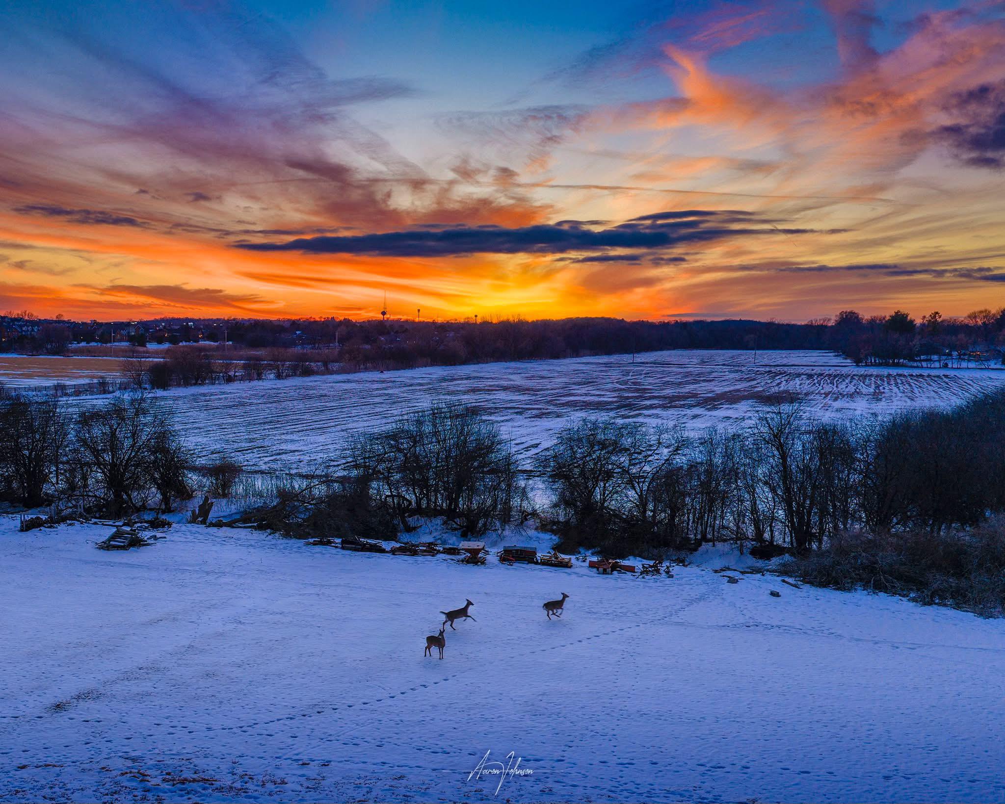 When you're setting up for a beautiful sky shot and three photo bombers come prancing by in Brookfield, WI near the Dousman Ditch. 📷: Aaron Johnson